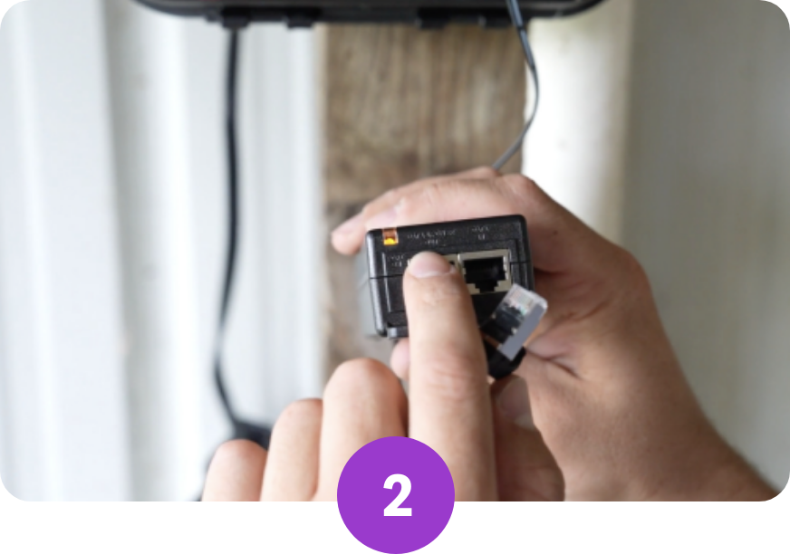 Connectez l’autre extrémité du câble Ethernet au port d’alimentation et de données du bloc d’alimentation 55v SenseHub® fourni dans la boîte avec le contrôleur. Connectez ensuite un autre câble Ethernet entre le port « Data Only » (données uniquement) de ce bloc d’alimentation et le routeur Internet ou le commutateur réseau. Une fois la connexion Internet établie, le voyant du contrôleur passe du rouge au vert.