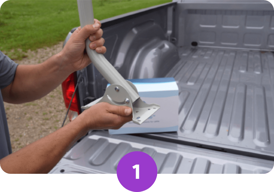 Retirez le support de montage métallique à l’arrière du contrôleur SenseHub®. À l’aide de deux colliers de serrage, fixez le support à la partie inférieure du mât de l’antenne, orientée vers l’extérieur.